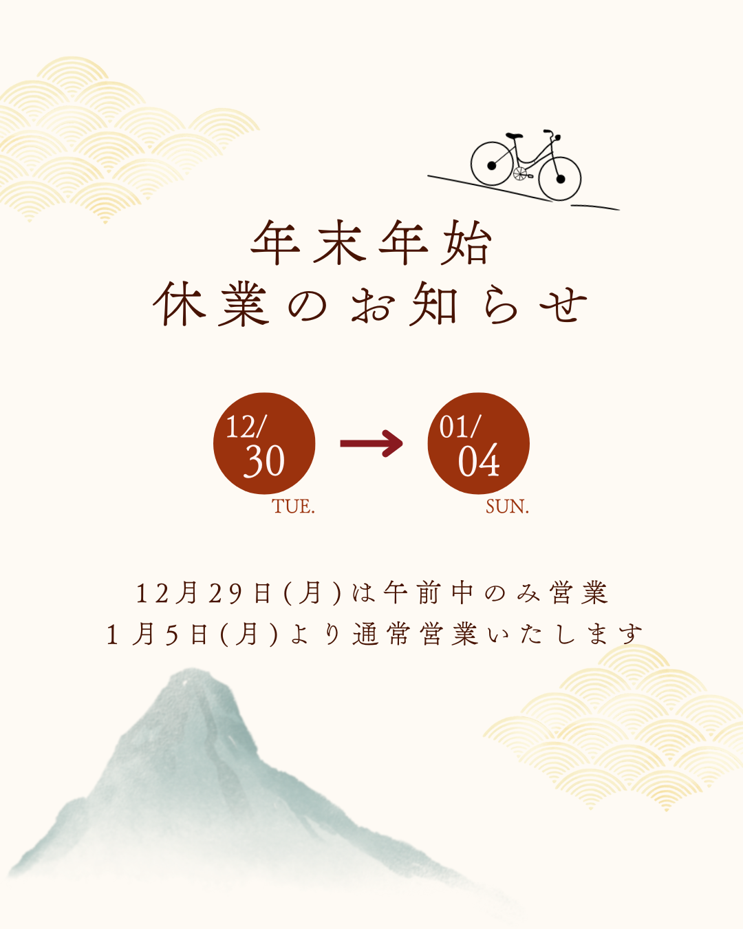【お休み】12/30(火)、12/31(水)1/1(木)、1/2(金)、1/3(土)、1/4(日)